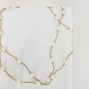 Vintage Monet Gold Tone Snake Chain With Faux Pearl Necklace Long Dainty Classy