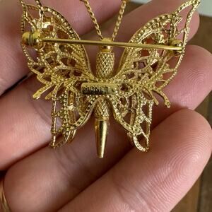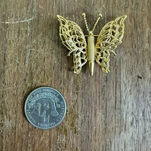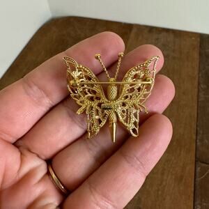 Vintage Monet Gold Tone Textured Filigree Butterfly Brooch Pin