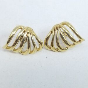 Vintage Monet Gold Tone Wavy Design Stud Earrings, Retro 90s Style, Estate