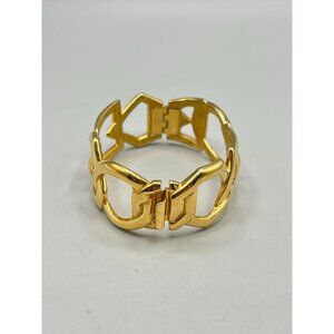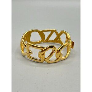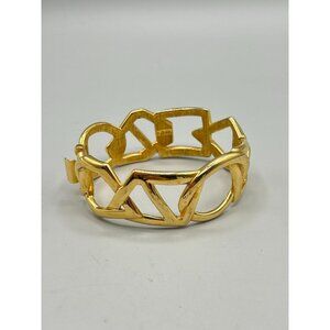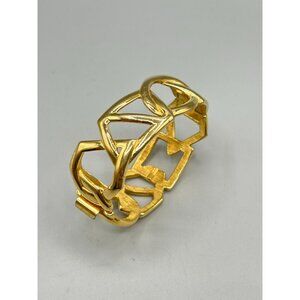 Vintage Monet Gold Tone Wide Clamper Bangle Bracelet Geometric Design