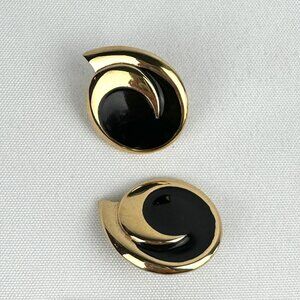Vintage Monet Gold and Back Enamel Clip On Earrings