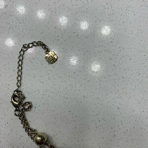 This Monet necklace features a classic design with gold-toned metal beads of varying sizes and textures. The beads alternate between ribbed, and textured finishes, creating a visually interesting pattern. The necklace is finished with a secure lobster clasp and a small Monet tag. Approx 24" with 4 extension.