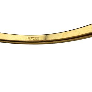 A classic vintage Monet bangle featuring a sleek gold-tone finish and blue enamel accent along the edge. Elegant design and meticulous craftsmanship make for a timeless accessory.