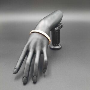 This Monet gold-tone bangle bracelet features a classic etched design with a smooth interior. Its timeless elegance adds sophistication to any attire.