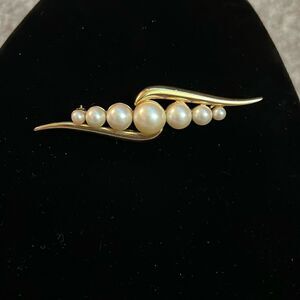 Vintage Monet Gold and Pearl Brooch / Pin