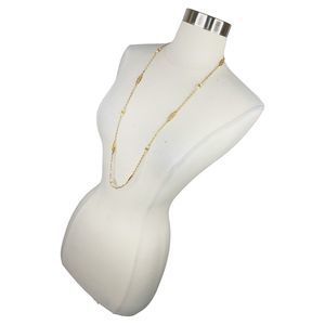 Gold tone intricate chain necklace, faux pearl accents, pullover style- no open/shut closure, signed Monet tag