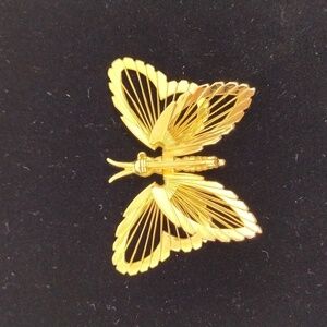 Vintage Monet Goldtone Filagree Butterfly Brooch Pin
