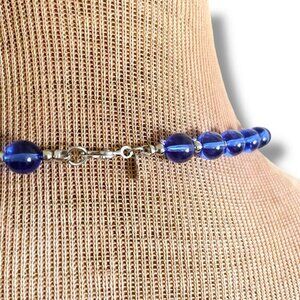 Vintage Monet Jelly Lucite Beaded Necklace Blue Silver Single Strand 27" Signed