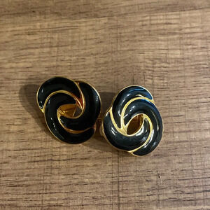*Vintage* Monet Knot Black Enamel & Gold Tone Clip Earrings- Excellent Condition