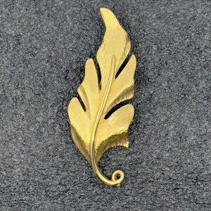 Add a touch of elegance to your ensemble with this vintage Monet leaf brooch, featuring a large brushed gold tone design. Perfect for collectors and fashion enthusiasts alike.