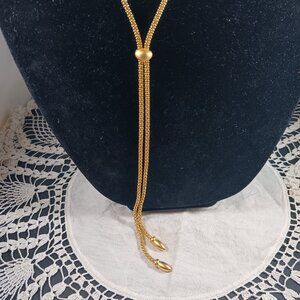 Vintage Monet Necklace Polished & Matte Gold Tone Lariat BOLO RARE