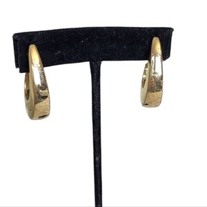 Vintage Monet Oval Hoop Clip On Earrings Screwback Yellow Gold Plated