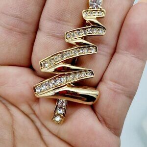 Vintage Monet Pave Crystals Christmas Tree Brooch Gold Tone Timeless Jewelry EUC