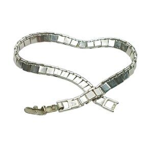 This vintage bracelet showcases a timeless box chain design in a silver tone, ideal for adding a subtle antique charm to your jewelry collection.