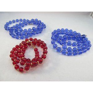 Vintage Monet Red and Blue Plastic Bead Necklaces Set of 3