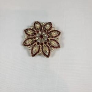 Vintage Monet Red and clear gold tone flower pin brooch measures about 2 inches