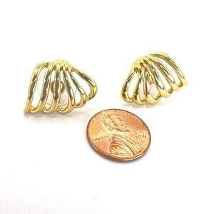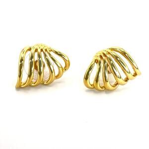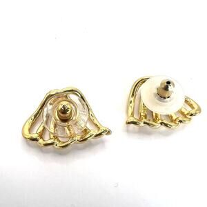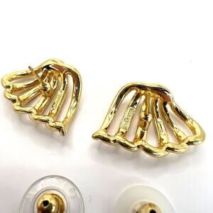 Vintage Monet Signed Gold Tone Wing Stud Earrings Pierced MCM Mid Century