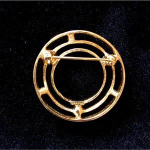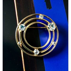 Vintage Monet Signed Mid Century Modern Rhinestone Circle Brooch