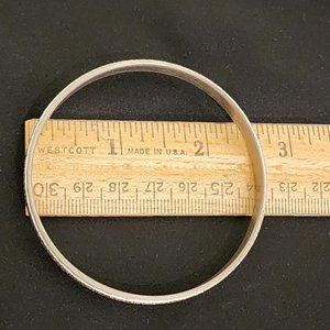 Vintage (1960s-1970s) Monet silver tone metal bangle bracelets - set of 3 Each is a different texture, design, and weight. One bangle is approx. 1/4" wide; the second bangle is approx. 1/8" wide; the third bangle is approx. 1/16" wide. Approx. diameter of bangles range from 2 3/8" to 2 1/2". Two bangles are signed "Monet", while the third (thinnest width) doesn't have brand markings. Good pre-owned condition. Please see photos. Smoke free home.