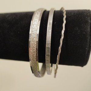 Vintage Monet Silver Tone Bangle Bracelets - set of 3