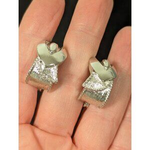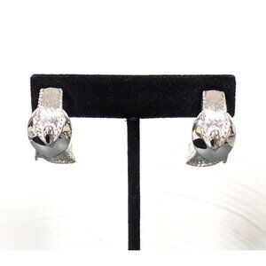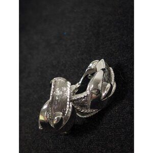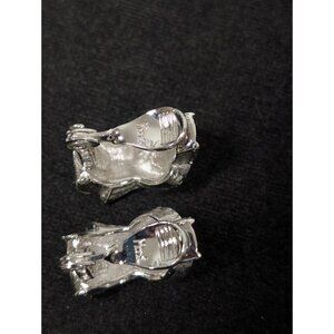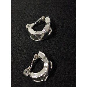 Vintage Monet Silver Tone Brushed Buckle Hoop Huggie Clip Earrings Retro MCM