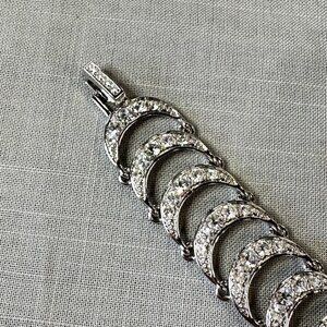 Vintage Monet Silver Tone Crescent Moon Rhinestone Bracelet