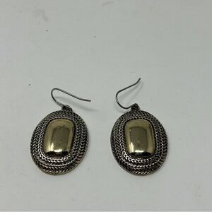 Vintage Monet Silver Tone Round Rectangle Braided Design Dangle Earrings