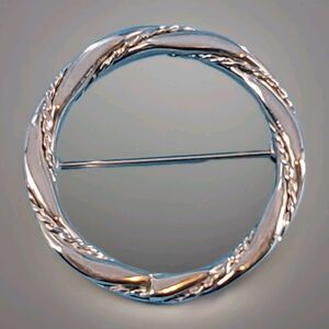 Vintage Monet Silver Tone Spiral Ring Brooch Pin Elegant Signed estate Jewelry