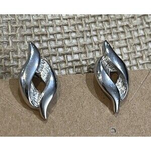 Vintage Monet Silver Tone Teardrop Clip On Earrings~Signed