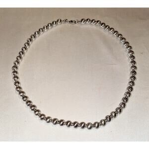 Vintage Monet Silver Tone Textured Beaded Single Strand Necklace 15” Signed
