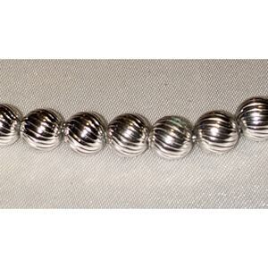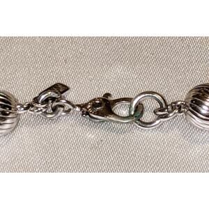 This is a Simple Vintage Monet Silver Tone Textured Beaded Single Strand Necklace. It measures 15” long, and the metal beads are strung on a narrow chain. It is signed. In very good vintage condition. Please see pics for details.