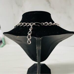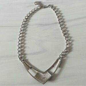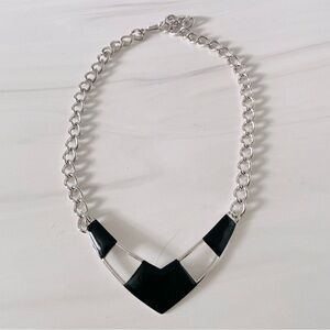 Elevate your accessory game with this stunning Vintage Monet collar necklace. Crafted from high-quality silver tone metal, this piece features a bold black enamel finish that beautifully contrasts the shimmering surface. The sleek, contemporary design makes it a standout statement necklace, perfect for adding a touch of sophistication to any outfit.