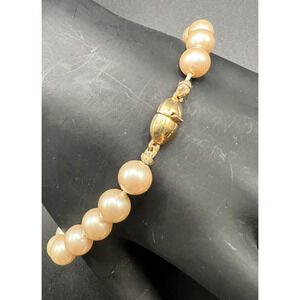 Vintage Monet Simulated Pearl Bracelet Hand Knotted Single Strand Box Clasp