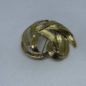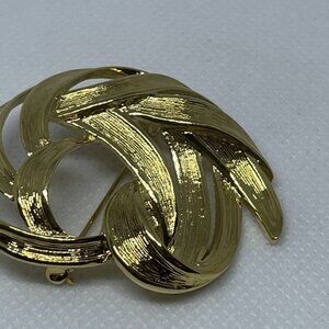 Vintage Monet Swirl Brooch Pin Brushed Gold Tone
