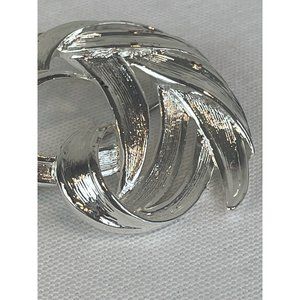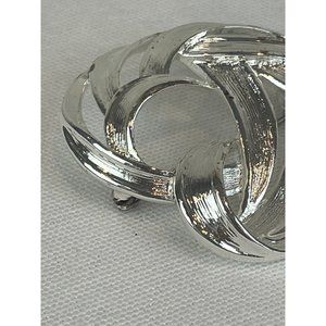 Vintage Monet Swirl Brooch Pin Silver Tone Shiny Textured 2" Signed