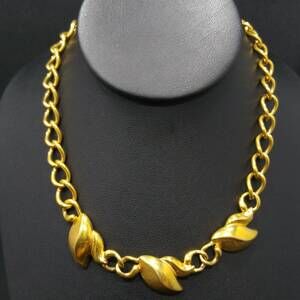 This is a beautiful vintage Monet three-leaf gold plated chain necklace from the 1960s. The necklace features three sculptural leaf links at the front with interlocking chain links throughout. The gold plating has been tested and confirmed as 10K surface metal, typical of Monet’s high-quality craftsmanship during this period.