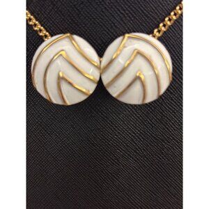 Vintage Monet White & Gold Chevron Clip-On Earrings - Timeless Statement Jewelry