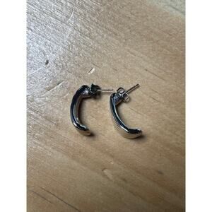 Vintage Monet Women's Silver Toned ribbed earrings. Half Hoop Design
