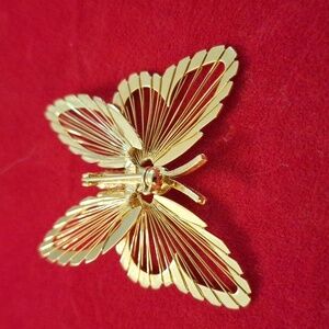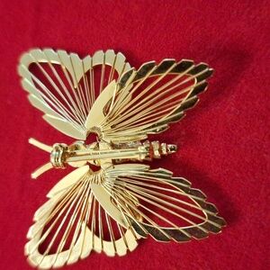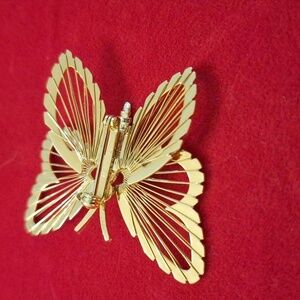 Vintage Monet butterfly brooch gold tone wire wings insect moth jewelry pin