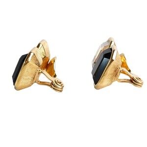 Vintage Monet clip-on Black and Clear Rhinestone Gold-Tone Earrings RARE