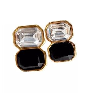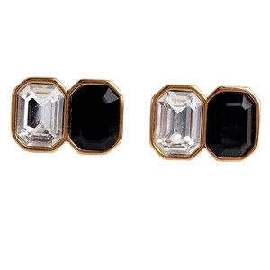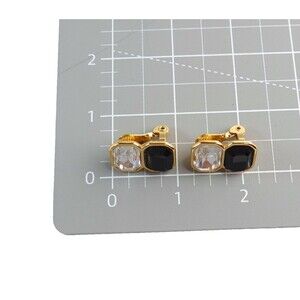 Vintage Monet clip-on Black and Clear Rhinestone Gold-Tone Earrings RARE. This elegant piece is in good pre-owned condition. It is so charming and a delightful collectible.