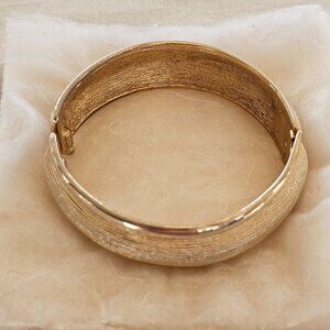 Vintage Monet, gold-toned metal bangle bracelet; ribbed, textured design
