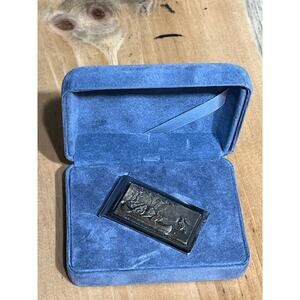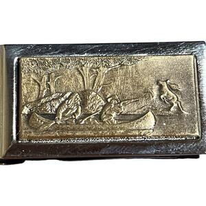 Vintage Money Clip. Hunting Scene Indian & Frontiersman. Two Tone Metal. Deer
