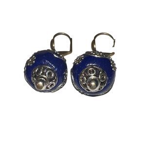 Vintage Mongolian Beads Bollywood Earrings Clip On Dangle Jewelry Blue Silver