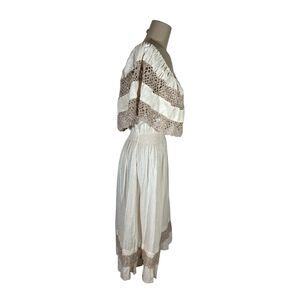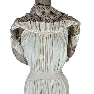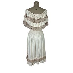 Vintage Monica Richards Boho Mexican Off Shoulder Linen Dress Cottage Ethnic