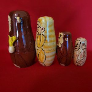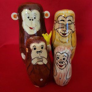 Vintage Monkey Nesting Dolls See Hear Speak No Evil Set of 4