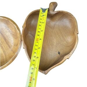 Vintage Monkey Pod BowlsSet Wood Leaf Serving Snack Tray Woodcraft Hawaii MCM