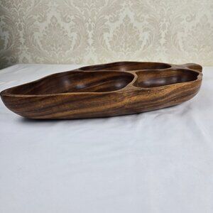 Vintage Monkey Pod Wood Leaf Serving Bowl 3 Sections Made in the Philippines