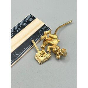 Vintage Monkey with Music Box Pin Brooch Gold Tone Fun Figural Jewelry