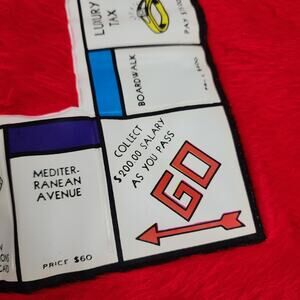 Vintage Monopoly Faux Fur Rug FAO Schwarz Vinyl Game Board 29"x29" 1960s 1970s